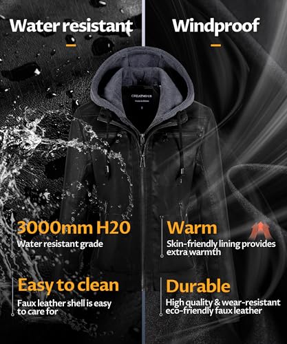 More information about CREATMO US Women's Faux Leather Jacket Waterproof Motorcycle Bomber Jacket Vintage PU Moto Biker Coat With Removable Hood