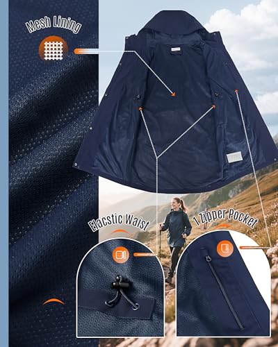 33,000ft Women's Waterproof Long Rain Coats with Mesh-Lind Breathable Rain Jacket with Hood Trench Coats Windbreaker 6