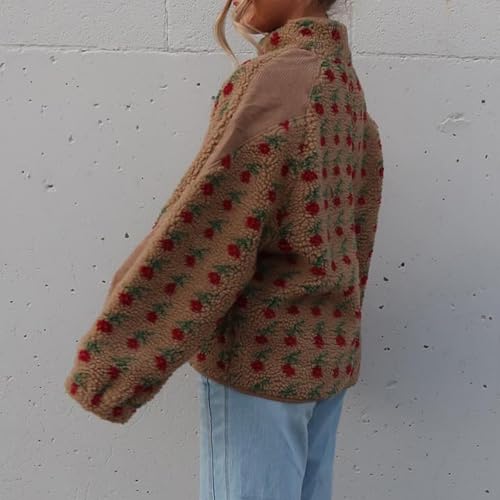 Ainangua Printed Fuzzy Sherpa Fleece Jacket Women Oversized Plush Zip Up Floral Sweatshirt Winter Warm Casual Outwear 5