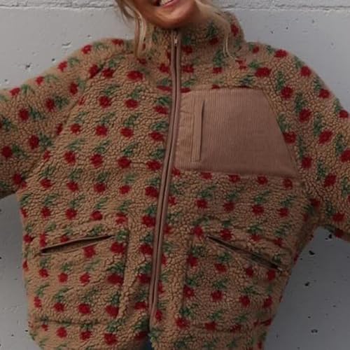 HOT ! Ainangua Printed Fuzzy Sherpa Fleece Jacket Women Oversized Plush Zip Up Floral Sweatshirt Winter Warm Casual Outwear