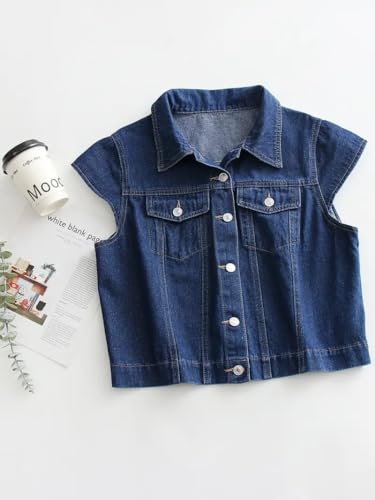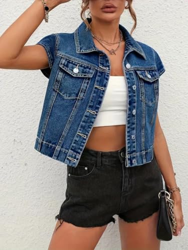 LifeShe Womens Vintage Denim Vest Button Down Short Sleeve Jean Waistcoat Jacket 5