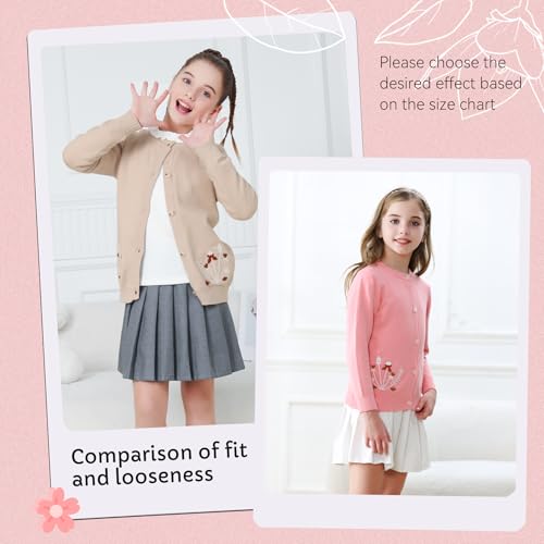 Zando Girls Cardigan Sweater Cotton Girls Long Sleeve Sweater Crewneck Button Up Knit Sweaters for Girls 4-12 Years 6