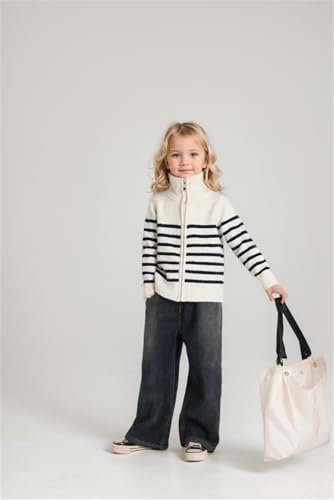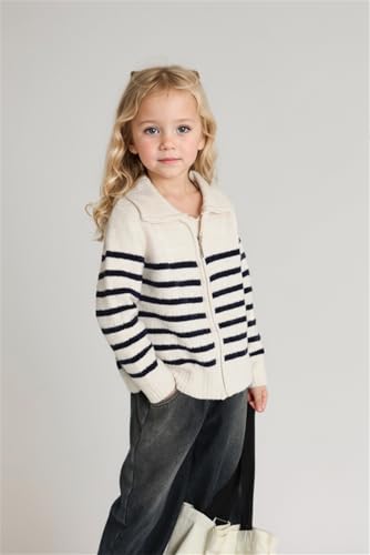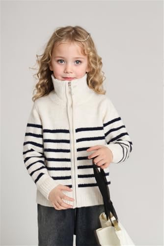 Girls Knit Cardigan Sweater Stripe Color Zip Long Sleeve Kids School Uniform Fall Jacket 6