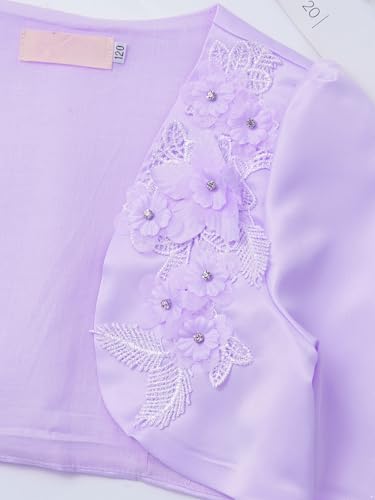 Kids Satin Flower Girl Bolero Shrug Dress Coat Long Sleeve Cardigans Short Jacket Floral Beaded Cover up 6