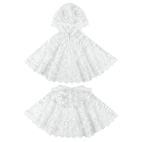 YEAHDOR First Communion Bolero for Girls White Floral Lace Hooded Shawls Wrap Flower Girl Dress Cover up 2