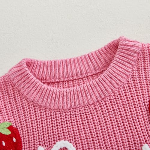 • DESIGN: Kids girls sweater use letter and strawberry embroidery, crew neck, long sleeve design, bright colors make the baby look cute and lovely