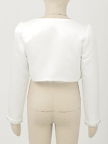 • Kids girls long sleeve open front bolero pearls sequins beaded shrug cardigan wedding event dress accessories