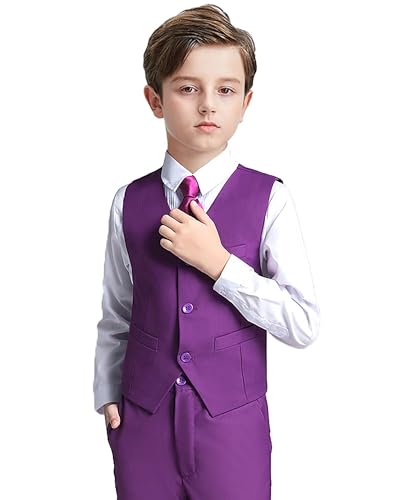 • Feature: Boys formal vest set features adjustable back strap,3 buttons closure,2 side pockets and a chest pocket,classic design complemented by a matching bowtie and tie.