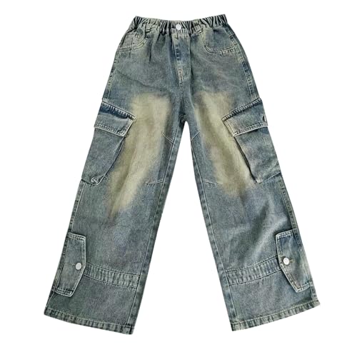 Boy's Elastic Waist Loose Cargo Pants Casual Preppy Sweatpants with Pockets Cargo Jeans for Boys 6