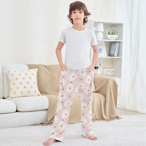 Boy's Pants White Daisy Flower Black Dots Jogger Pants Elastic Waist Long Bottoms Trousers with Pockets 6-14 Years 7