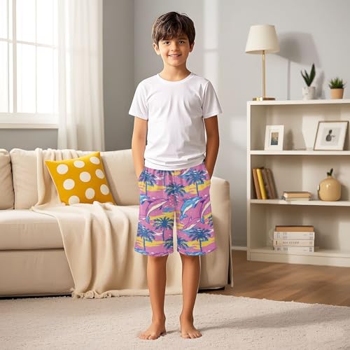 ALAZA Color Wave Palm Tree Dolphin Pajama Shorts Elastic Waist Casual Sleep Shorts with Pockets Size 6-14 5