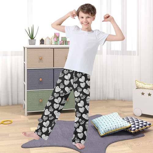 Pajama Pants Heart Line White Black PJ Bottoms Sleepwear Lounge Sleep Pant with Pockets 4