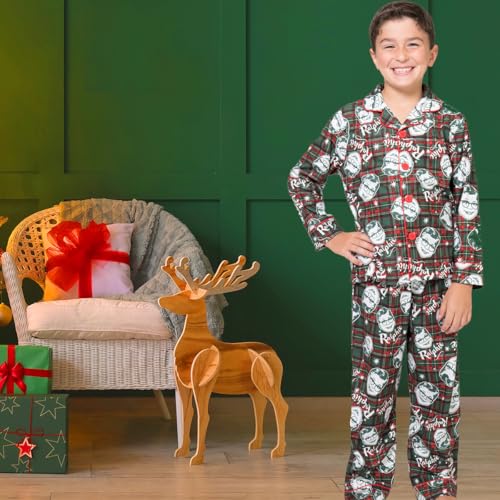 A Christmas Story Boys Ralphie Glasses Santa Christmas Holiday Flannel Plaid Button Pajama Set 6