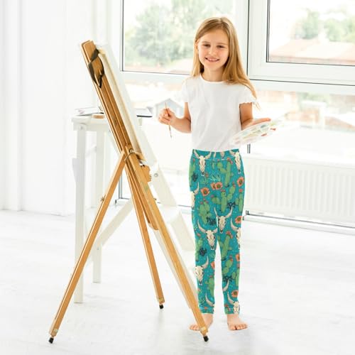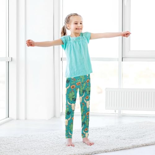 Wusikd Cactus Cow Skull Girls' Leggings Toddler Doodles Retro Cartoon Kids Yoga Pants Dance Active Tights 4T 7