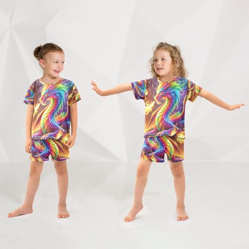 Dragon Flames Rainbow Pajama Set Short Sleeve Summer Pajamas Shorts Sets PJ Clothes Set Soft 5Y 4