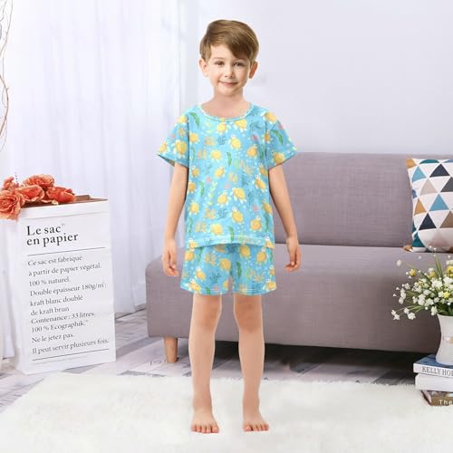 Vdsrup Cute Little Turtle Summer Pajamas Set Short Cotton Yellow Shells Sleepwear 2 Piece Unisex 5Y 4