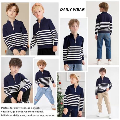 Danny D Boys Stripe Quarter Zips Pullover Sweater Kids Chunky Long Sleeve Knit Pullover Sweater  4