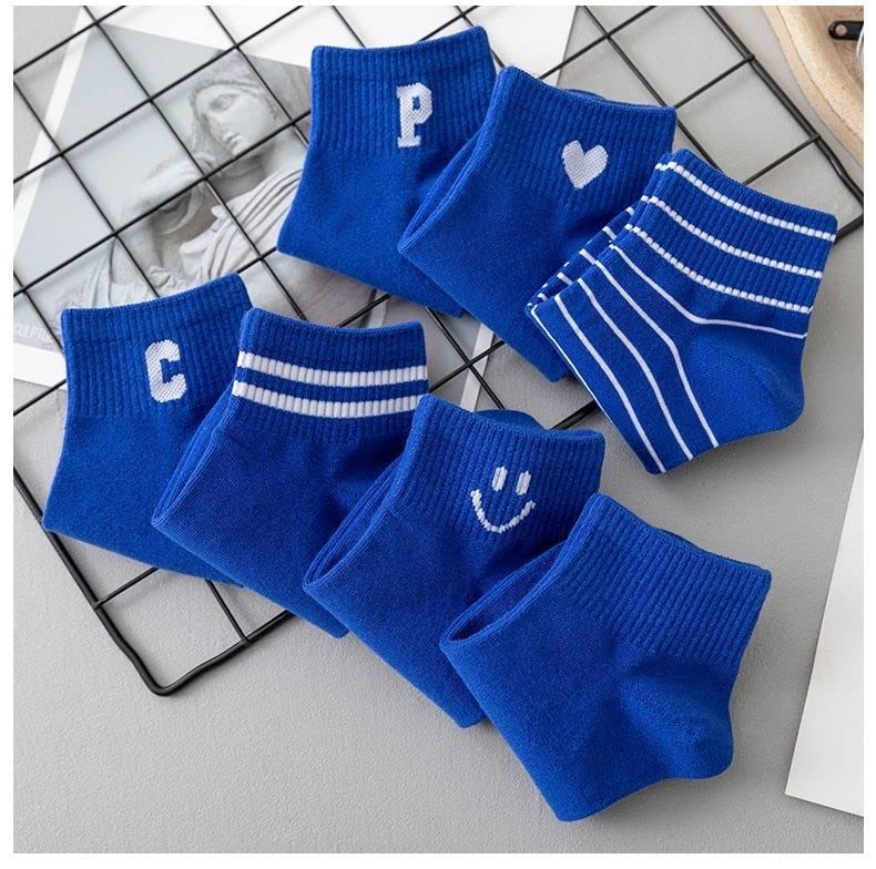 ALTALIVA 5/6 Pack Blue Women Casual Cotton Socks Low-Cut Crew Socks for girls 7