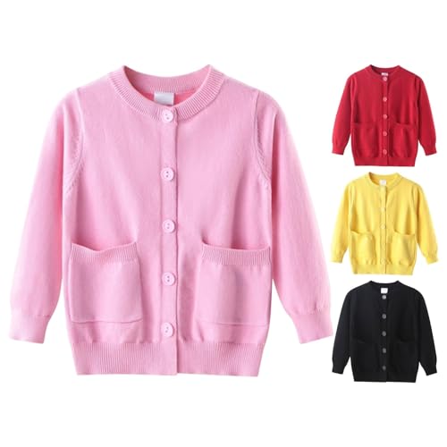 Kids School ?niforms Cardigan Long Sleeve Open Front Button Sweater Ribbed Knit Loose Casual Fall Tops with Pockets 6
