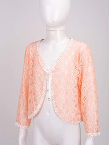 Kids Girls Ruffled Long Sleeve Lace Hollow Floral Simple Cardigan Shrug Top Bolero Cardigan Shrug 7