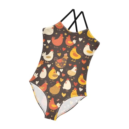 KLL Chicken Black and White Girl 1 Piece Swim Suit Beach Swimwear Adjustable Shoulder Strap UPF 50+ 1