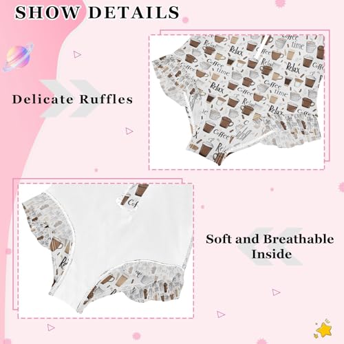 ALAZA Coffee Cup Cartoon Girls One Piece Swimsuit Long Sleeve Rashguard Swimsuit UV 50+ Swimwear Zip 5