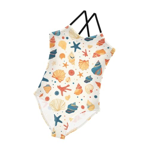 KLL Seashells Different Shapes and Starfish Girl 1 Piece Swim Suit Summer Swimwear Adjustable Strap Cute 1