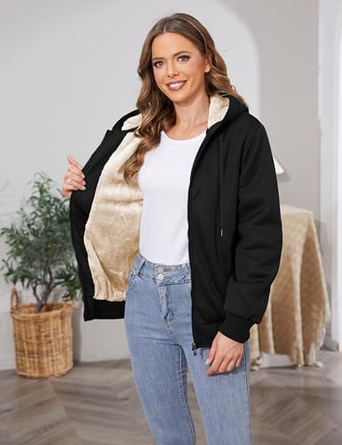 PUWEI Women's Winter Warm Fleece Jackets Thick Sherpa Lined Zip up Hoodies Heavyweight Sweatshirt Coat 4