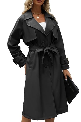 Bellivera Women Trench Coat Long Loose Jacket Faux PU Leather Oversize Classic Lapel Overcoat with Belt 1