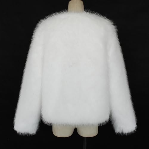 Oplxuo Women's Faux Fur Coat Fluffy Faux Fur Jacket Long Sleeve Collarless Furry Winter Jackets Shaggy Parka Short Coat 3