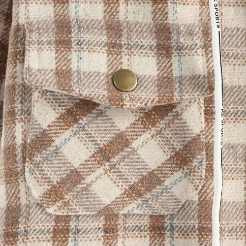 ZAFUL Women's Plaid Fleece Lined Hooded Jacket Button Up Oversized Fuzzy Coat Checkered Flannel Hoodie Jacket 5
