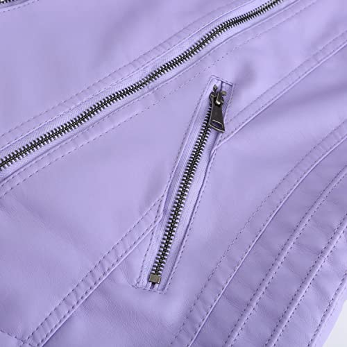 Lu's Chic Women's Motorcycle Jacket Fashion Dressy Vegan Leather Biker Coat Light Slim Fit Crop Blazer Moto Jacket 5