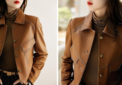 • 【STYLISH DESIGN】The cropped faux leather jacket women features lapel collar, long sleeves, single breasted, 2 flap pockets front, slim fit, crop length, classic solid color and stitching style make this womens faux pu jacket chic and stylish. This moto biker jacket is perfect for the woman who wants to keep warm and charming all the time. Your Best Choice!