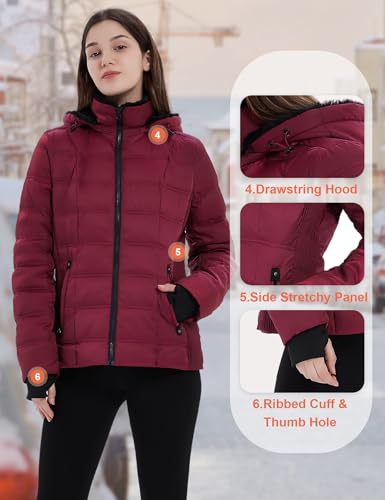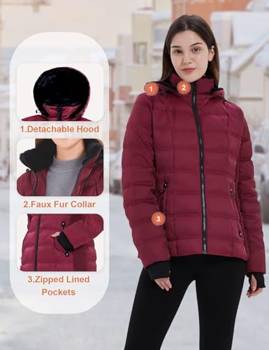 Women Down Puffer Jacket, Hooded Puffer Coat with Faux-Fur Hood & Collar Thumb Hole 6