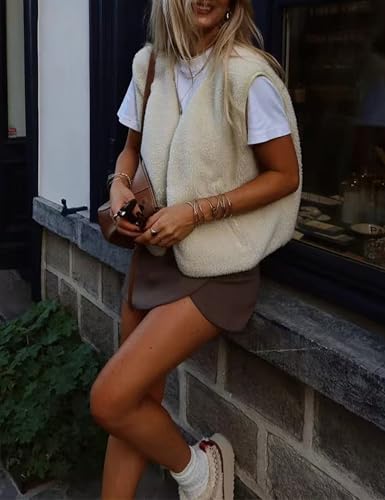 Womens Fuzzy Fleece Vest Casual Sleeveless Sherpa Jacket Warm Button Down Gilet Winter Outwear with Pockets 7