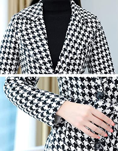 HOT ! ebossy Women's Houndstooth Trench Coat Winter Single Breasted Quilt-Lined Long Coat