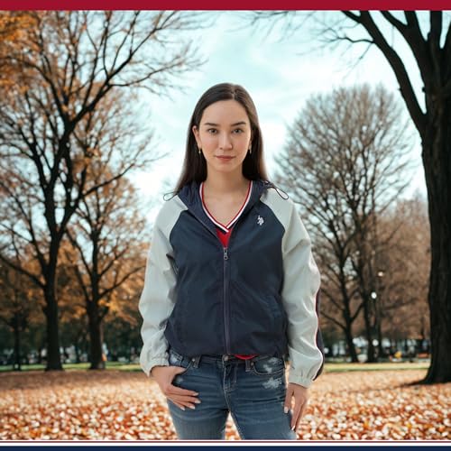 U.S. Polo Assn. Women's Hooded Raglan Sleeve Varsity Windbreaker W/Piping Poly Mesh Lining 6