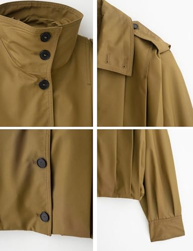 More information about Womens Cropped Pleated Jacket Lapel Long Sleeve Button Down Short Trench Coat Casual Trendy Outwear