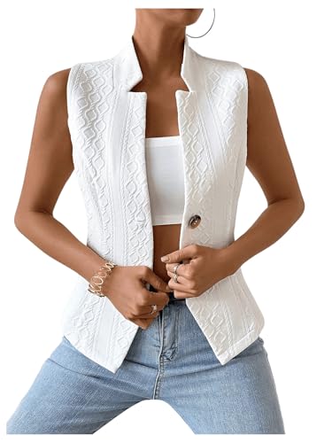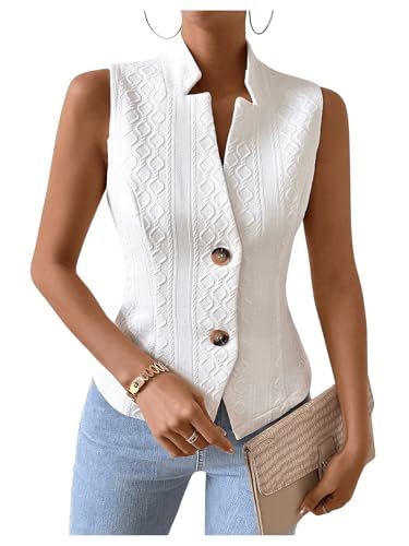 HOT ! GORGLITTER Women's Sleeveless Blazer Vest Top Dressy Textured Button Up Suit Vest Split Hem Collared Waistcoat
