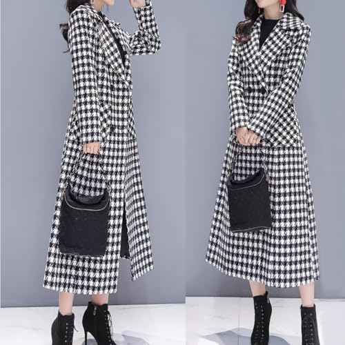 HOT ! chouyatou Women's Houndstooth Notched Collar Double Breasted Overcoat Plaid Wool Blend Long Trench Coat