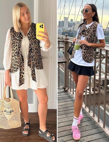 • Features: Women's tie front vest top features cute leopard print, open front, sleeveless, relaxed fit, trendy, colorful and fashion spring fall winter puffy gilet for women.