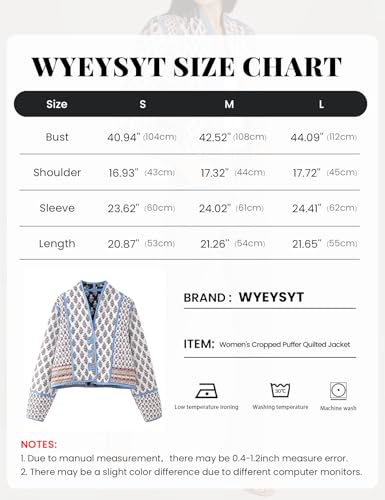 More information about Wyeysyt Women's Cropped Quilted Puffer Jacket Cardigan Floral Printed Button Up Long Sleeve Padded Quilted Short Puffer Coats