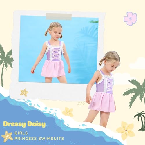 Dressy Daisy Girls Princess One Piece Swimsuit with Skirt Swimwear Swimming Bathing Suit Swim Wear Dress Up 1