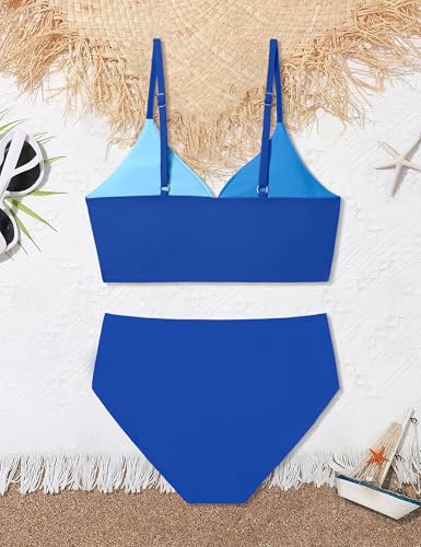 • 👙[Special Design]: Our girls swimsuit has design the Adjustable Double Shoulder Straps and the Chest pads.Its top is azure blue + navy blue and its Bottoms is deep blue.This girls bathing suit is sure to turn heads at the pool or beach.