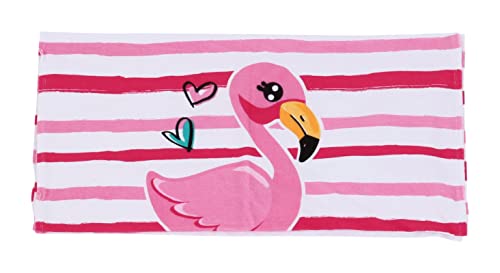 • Featuring a pink Flamingo bird flamingo bird themed striped swimming suit and drawstring bag with phrase "Hello Summer" and a super soft 24x48 inch towel with flamingo cartoon art