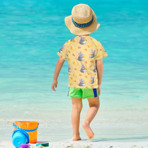 ALAZA Kids Rash Guard Girls Boys Toddler Swim Shirts Short Sleeve Mouse Cheese UPF 50+ 3T 1