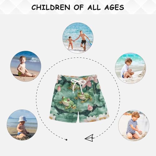 More information about Pigsaly Boys' Swim Board Shorts Lotus Flowers Watercolor Green Frogs Boy's Swim Trunks Kids Swimwear 3T