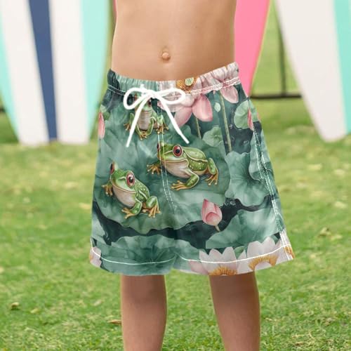 Pigsaly Boys' Swim Board Shorts Lotus Flowers Watercolor Green Frogs Boy's Swim Trunks Kids Swimwear 3T 5