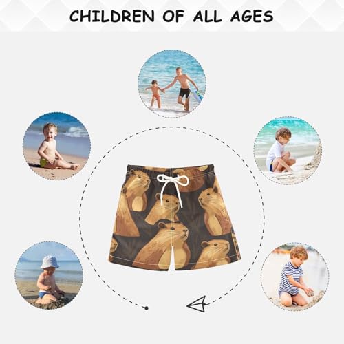 Pigsaly Boys Swim Trunks Animal Capybara Brown Boys Board Shorts Swimsuit Swimwear Summer Bathing Suit 5T 4