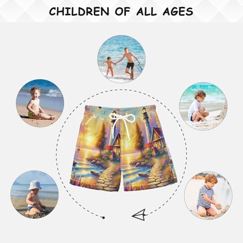 Dusk Lighthouse Sea Boys Swim Trunks Quick Dry Toddler Swimsuit Boy Bathing Suits Swimwear Board Shorts 4T Multi 5